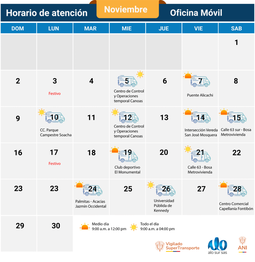 - La oficina móvil está ubicada en diferentes puntos del área de influencia para una eficiente atención de la ciudadanía en lugares de encuentro o mayor afluencia de personas.